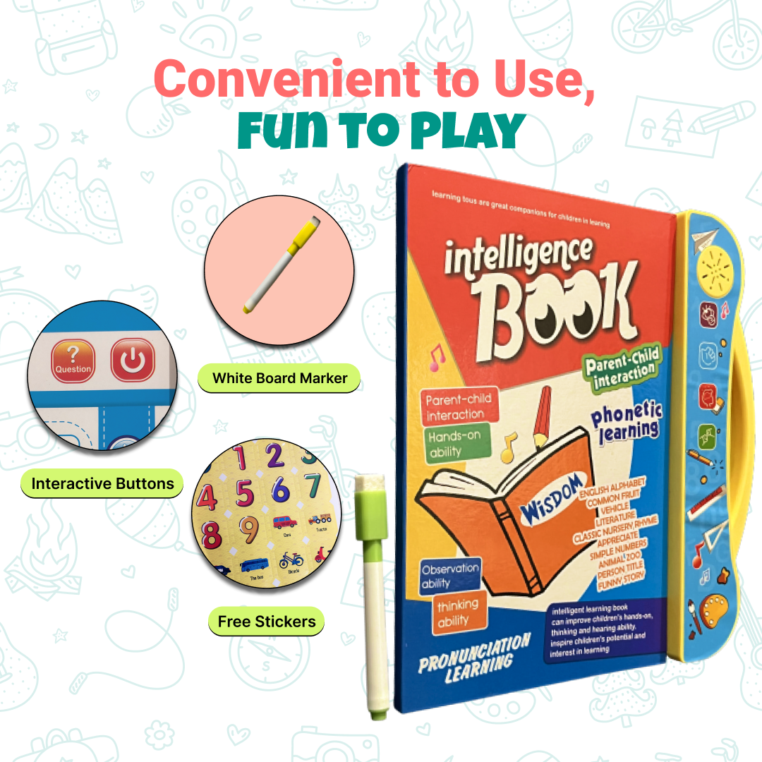 This interactive book isn’t just about learning, it’s about fun-filled discovery! It ignites 5 Key Smarts in your little one: Word Smart 📚 for building vocabulary, Number Smart 🔢 for recognizing numbers, Picture Smart 🎨 to boost creativity, Music Smart 🎶 for rhythm and sounds, and Self Smart 💪 to encourage independence and confidence.